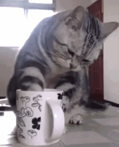 Gifs animados, graciosos y divertidos.. 9015 veces animales cafe comida gatos graciosos. Entra para ver el gif animado.. La palabra más importante está escrita en la taza.